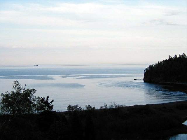 Как вы можете увидеть на карте, мы были в месте, где озеро представляет из себя довольно узкий залив, так что мы могли в дымке видеть другой берег - там уже штат Висконсин.