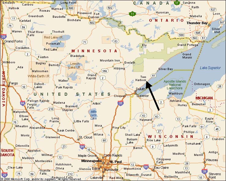 Поехали мы вначале в местечко Two Harbors (указано стрелочкой)