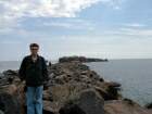 Тут мы тоже не удержались, свернули посмотреть на рукотворную "плотину" из огромных валунов, превратившую островок в косу. На острове живут чайки - огромная стая, так что даже было страшновато туда идти - если не заклюют, то покрасят :). Впрочем, по этим валунам мы бы добирались туда очень долго, поэтому мы остались на месте.