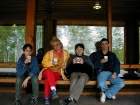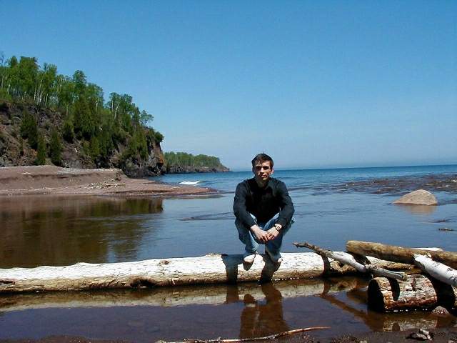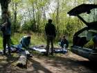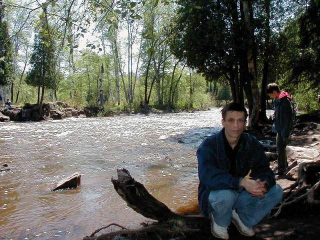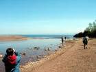 Река впадает в озеро, до которого мы дошли минут за 20. В устье реки обнаружилось несколько рыбаков с удочками и туристы с байдарками. Несколько позже один из них перевернулся и болтался в ледяной воде четверть часа, пока его товарищи помогли бедняге.