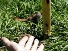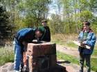 Павел тут же соорудил лодку из кусков коры и пытается ее спустить на воду.