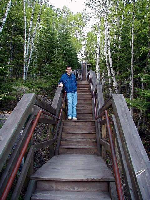 Кроме самого маяка здесь сохранились следы подъемника 1916 года постройки, по которому ездили вагончики, поднимающие грузы с причала внизу наверх (камни слева от лестницы). Ну а лестницу построили для туристов, в ней что-то около 200 ступеней.