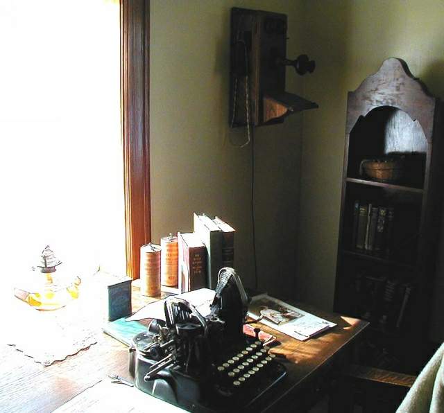 В домике старинная мебель, телефон, печатная машинка и даже граммофон Эдисона, работающий на барабанах с записью! Причем работу этой уникальной штуки нам с гордостью продемонстрировали и даже подпели :) К сожалению кадр с граммофоном не получился.