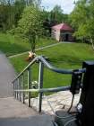 Позаботились об инвалидах и здесь. На площадку с маяком нет плавного заезда для инвалидной коляски, но зато перила лестницы особые, коляску можно прицепить к специальным захватам на перилах, нажать кнопку, и коляска опустится или поднимется, миновав ступени. Инвалидам нет доступа только на самый верх, в комнату с лампой.
