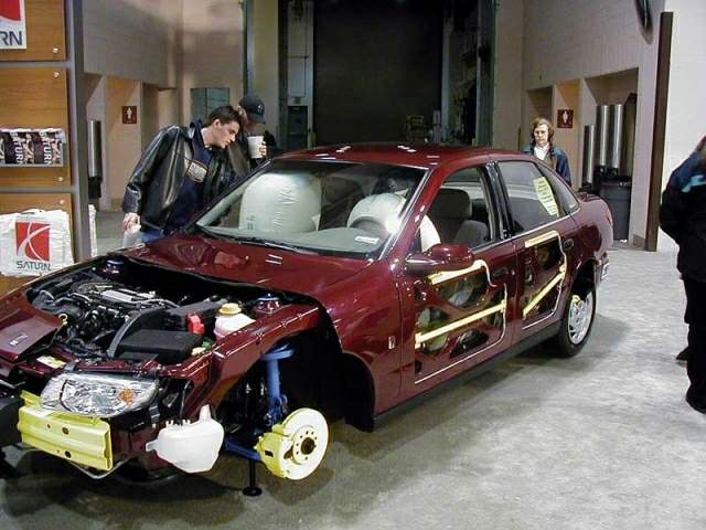 Был и такой вот деионстрационный автомобиль с вырезами, показывающими системы безопасности. Подушки тоже надуты.