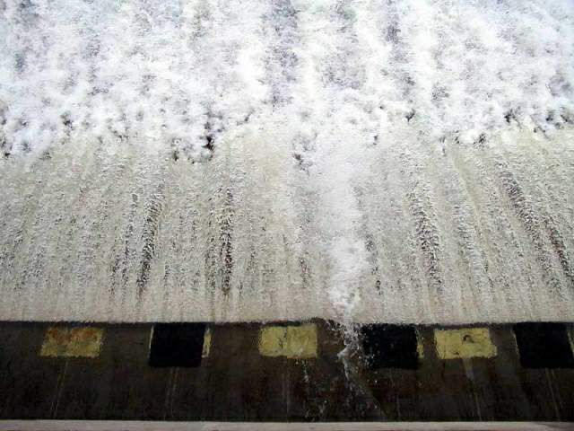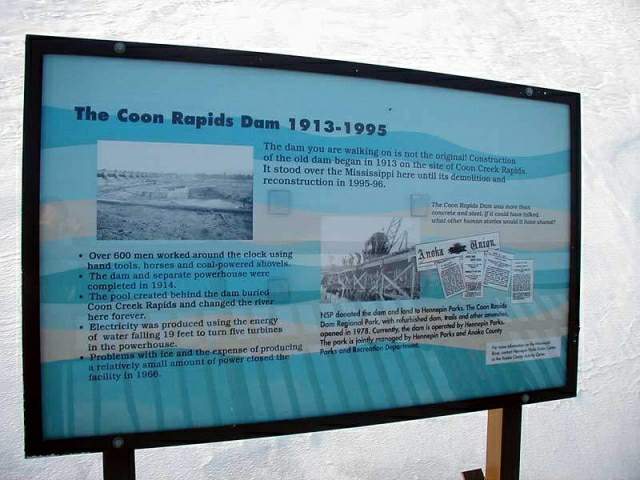 А на этом написано для чего предназначена дамба сейчас и предупреждение, что ее в любой момент могут закрыть для пешеходов для обслуживания. Еще был замечательный плакат с правилами поведения в этом месте, там было написано, что тут можно, а что нельзя сделать. Я на нем не обнаружил запрета прыгать с моста, спросил, почему это такое важное правило забыли написать, на что мне ответили, что это просто никому не придет в голову. Зря они так. А вдруг придет, а им отвечать :)