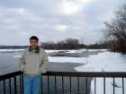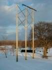 Река в этом месте довольно красивая, посередине виден большой остров, летом здесь хорошая рыбалка. Кстати, на проводах виден оранжевый шар. Это для того чтобы провода были лучше видны и никто на них не наткнулся.
