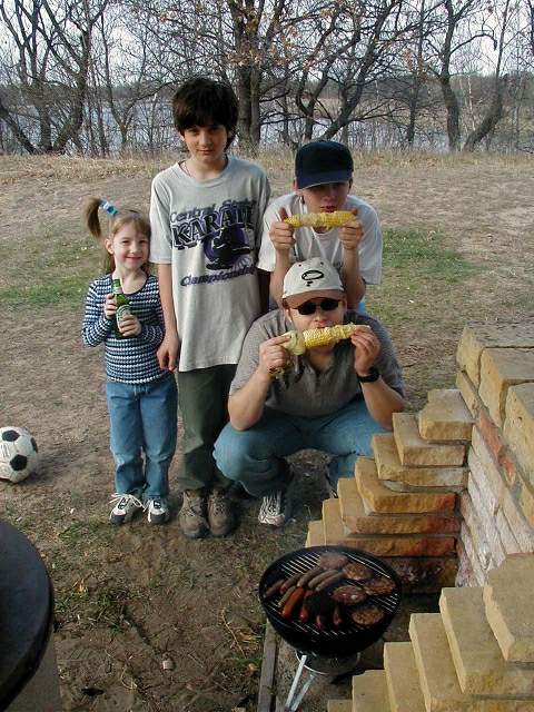 У Николовых был свой походный мангал, вот на нем мы и жарили то что у нас было.