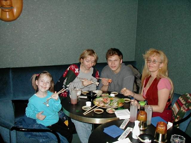 Мне очень нравится японская кухня, мы в Коннектикуте почти каждую неделю ходили обедать в японский ресторанчик, там делали замечательные суши, можно было наесться одной порцией до отвала и стоило это всего около 10 долларов на человека.