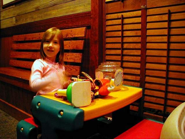 Тут же есть местечко для самых маленьких, на которое Катюшка тут же уселась и принялась играться с конструктором.