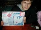 Впрочем, листочком и мелками Андрей тоже неприменул воспользоваться и нарисовал такую вот просоветскую пропаганду и оставил все это на столе, когда мы уходили.