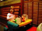 А это мы уже в японском ресторане. Мы пошли поесть суши, но т.к. нас было много и нам хотелось поговорить, то мы решили сесть за отдельный столик, а не садиться к суши-бару. Вокруг барной стойки плавают небольшие лодочки, которые используются в качестве подносов для доставки блюд от повара к посетителю.