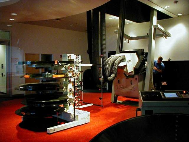 Это "будка киномеханика" 3М кинотеатра, где показывают фильмы на полусферическом экране. Как видите, киноаппарат несколько необычный, здесь используется одна из самых широких пленок в мире.