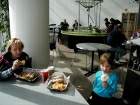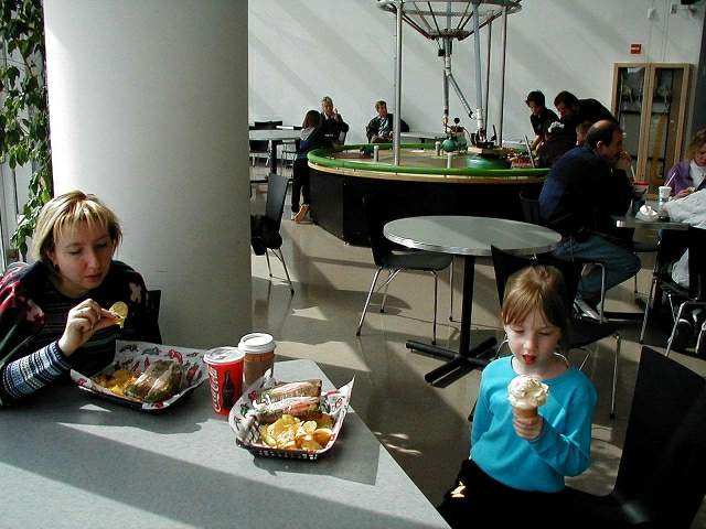 Кафе есть и здесь. Но даже в кафе стоит аттракцион, демонстрирующий физические законы.