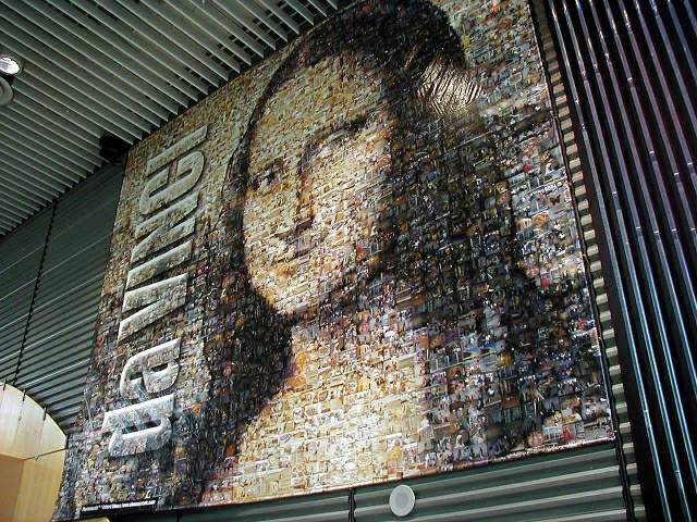 А эта гигантская картина висит в вестибюле музея. Эта мозаичная картина составлена из... обычных семейных фотографий 10х15!