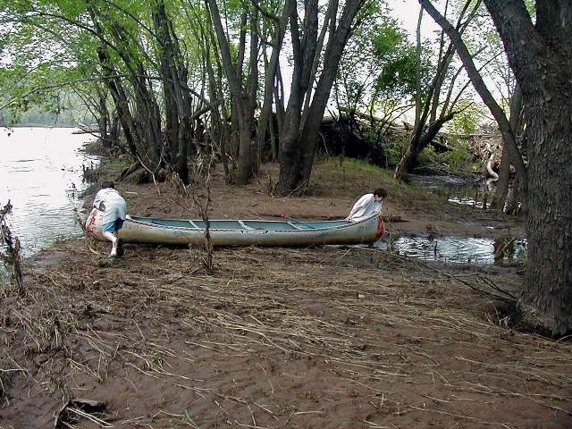 Это тот же остров, за мальчишками с каноэ видна гора бревен - это то что осело на острове во время паводка