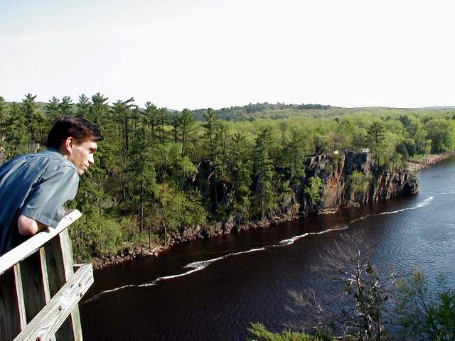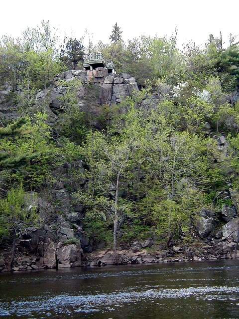 Часть реки протекает в ущелье глубиной метров в 30. На самом верху скалы видна смотровая площадка.