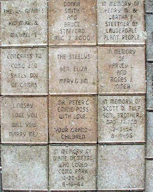 А потом мы пошли посмотреть на зоопарк. Вход туда бесплатный, существует он за счет финансирования из городского бюджета, благотворительности и продажи сувениров. Площадка перед главным входом выложена плиткой с кучей надписей. Любой может заказать плитку со своей надписью, и народ с удовольствием этим пользуется. Надписи самые разные - в основном в память кого-то, много признаний в любви: "Линдси, я люблю тебя. Ты выйдешь за меня?" Есть и просто типа "Здесь был Джон".